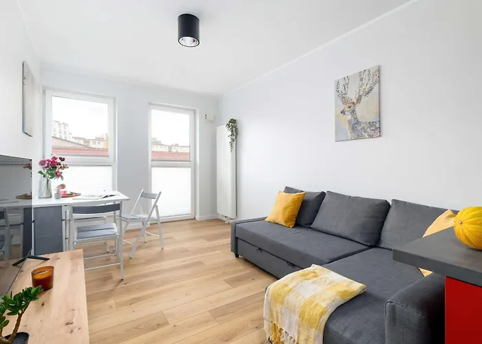 A 60 m²-es Red And Grey Apartment For 8 People In Poznan With Parking By Noclegi Renters a Jeżyce körzetben található, és egy 25 perces sétára fekszik olyan kulturális látnivalóktól, mint a Hangszermúzeum. A vendégek kényelmét Wi-Fi és ingyenes privát parkoló szolgálja.